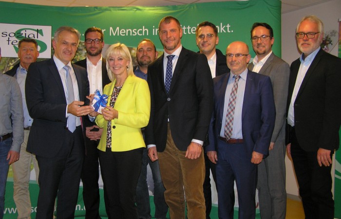 Nach einem Image-Film betonte Geschäftsführer Dr. Christian Weiß das Sozialteam sei an 15 Standorten von Bayern bis Sachsen präsent. Mit rund 700 Mitarbeitern decke es von der therapeutischen Einrich-tung bis zum Seniorenwohnheim mit Tagespflege und ambulanter Krankenpflege alle Bereiche ab.