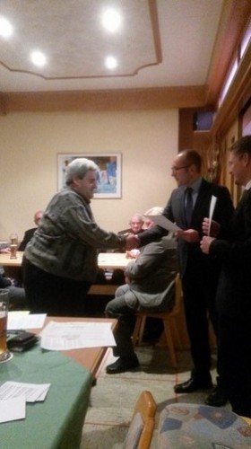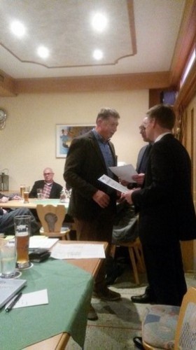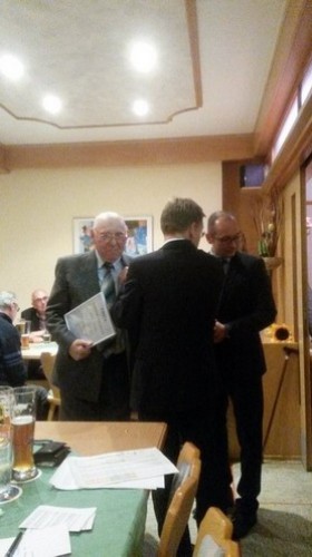 Die Ehrennadel in Silber und eine Urkunde für 40 Jahre Mitgliedschaft erhielten Gottfried Achatz, Lothar Förth, Klaus Köppl, Norbert Leeb und Rainer Schöffel. Für 35 Jahre wurden Bernhard Buchner, Gerhard Dötterl, Alfred und Gerd Dumler, Peter Leeb, Josef Märkl, Johann-Peter Sticht und Siegbert Stock mit Urkunden belohnt.