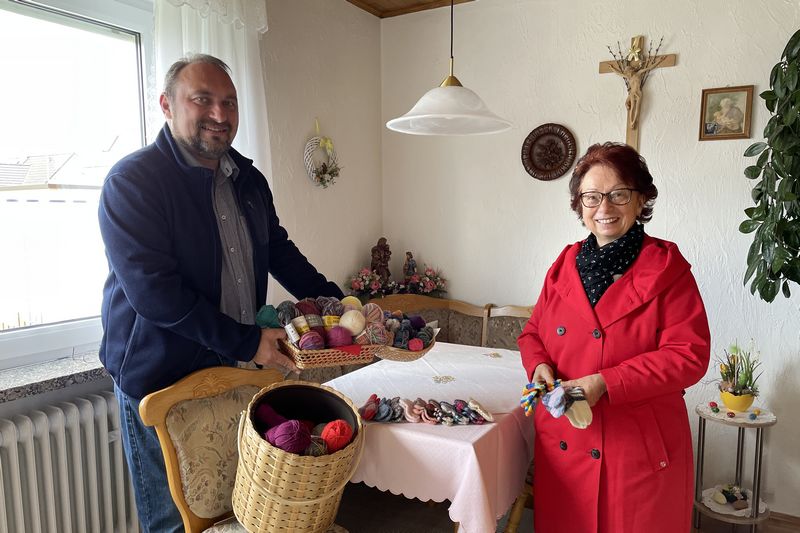 Ein großes Blumengesteck und ein gut gefülltes Wollkörbchen konnte symbolisch an eine langjährige Strickerin aus Neusorg übergeben werden. Im Körbchen versteckt war eine Geldspende der CSU – Neusorg, die von Oliver Becher weitergegeben wurde. „Es kann jetzt wieder neue Wolle gekauft und verarbeitet werden“, so Oliver Becher bei der Übergabe des Körbchens. Es sollte damit jedoch vor allem die Anerkennung und Wertschätzung zum Ausdruck gebracht werden, da die Strickerin, die nicht genannt werden will, in den vergangenen 6 Jahren bereits ca. 400 Paar Babysöckchen für die KoKi des Landkreises Tirschenreuth gestrickt hat. Diese übergab sie jeweils an Marianne Fütterer, die die Babysöckchen als kleines Geschenk in den Willkommenstaschen des Landkreises, zusammen mit Infos für die Eltern, an die Neugeborenen weiter verschenken konnte. Die Verteilung dieser Willkommenstaschen ist über die Gemeinden organisiert.